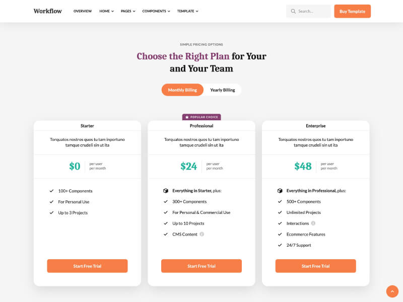 Meet Workflow, a powerful UI kit template for any kind of business. Choose from many pre-designed pages or mix sections to create your own unique website in record time.